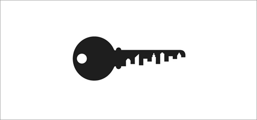 Этот логотип считается одним из самых удачных примеров использования негативного пространства для того, чтобы изобразить то, чем занимается компания. В негативном пространстве, образуемом лезвием ключа, мы можем увидеть архитектурные сооружения.